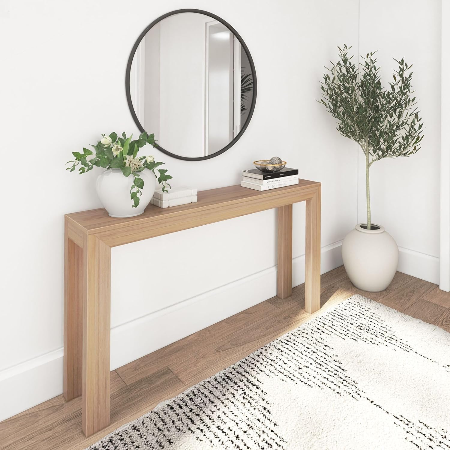 Bring natural charm and practical design to your home with this 56-Inch Solid Wood Console Table in Blonde Finish. Expertly crafted from knot-free solid pine wood, this table delivers durability and timeless appeal, making it a standout addition to your hallway, foyer, or behind the sofa.