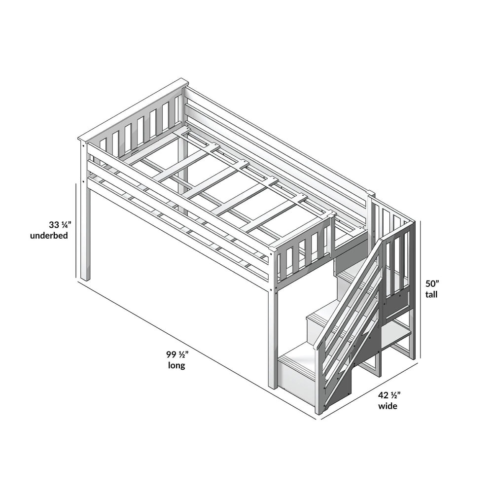 Twin Size Low Loft Bed with Stairs – Solid Wood Frame, Built-In Storage, Easy Access Design for Kids