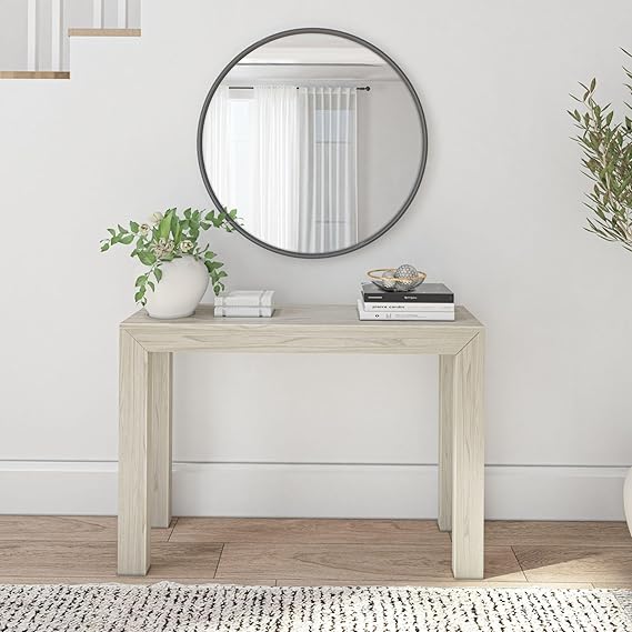Its narrow, space-saving profile makes it the perfect fit for entryways, hallways, or behind sofas, while the integrated lower shelf adds extra space for decor, baskets, or books. With its clean lines and soft textured finish, this piece fits beautifully in coastal, farmhouse, and modern interiors.
