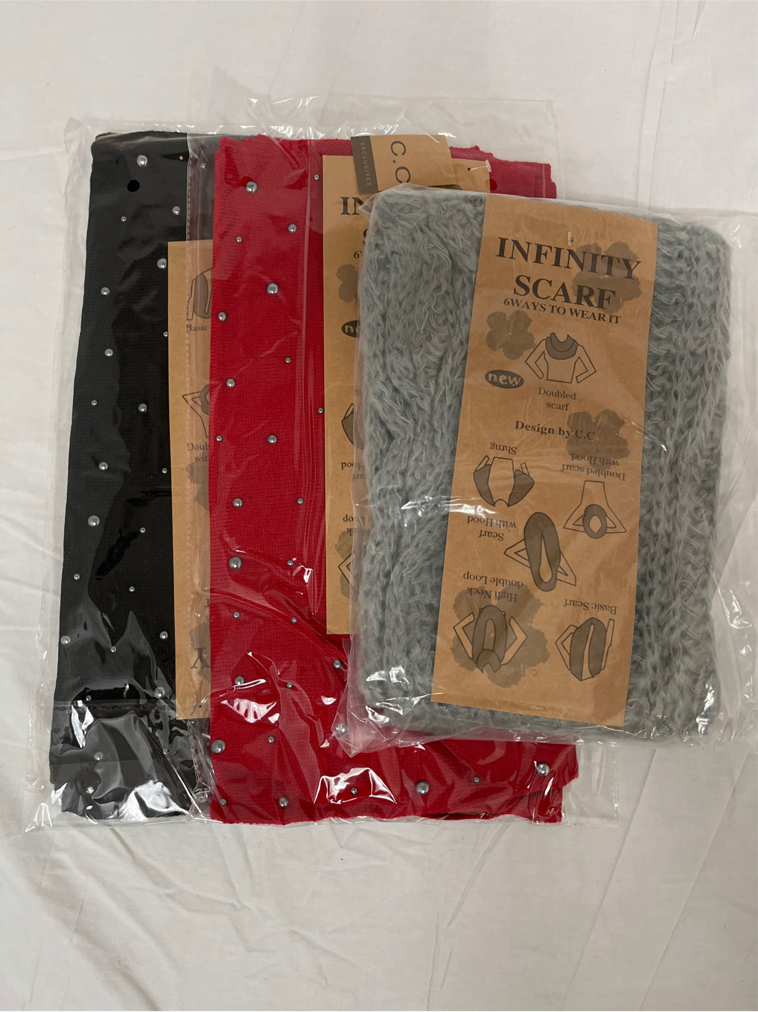 Styles: Assorted (chunky knits, classic solids, prints, ribbed textures)