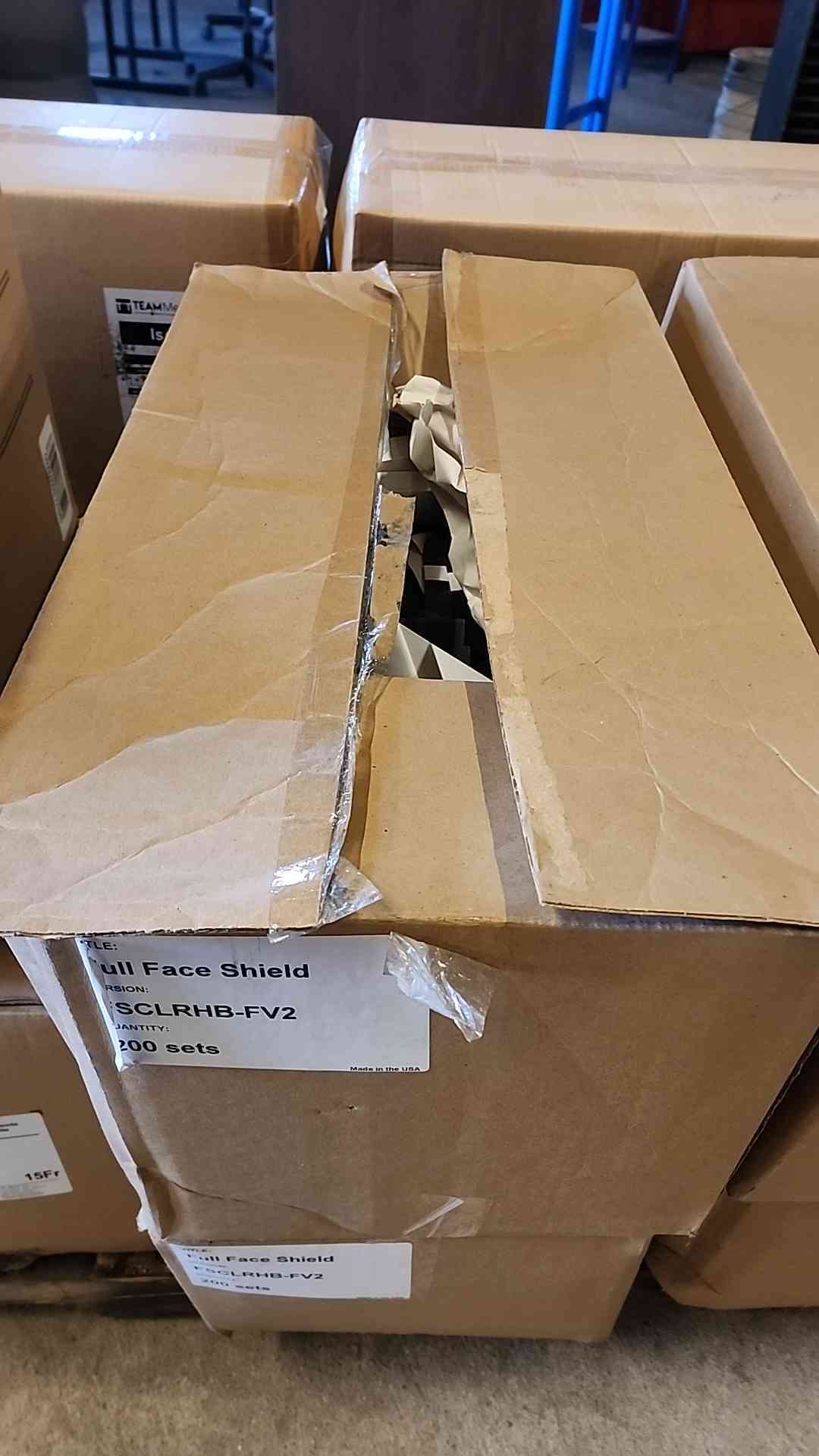 Protect your team with this bulk box of 200 full face shields, designed for reliable facial protection in high-risk environments. Model FSCLRHB-FV2, these shields are made in the USA and built to defend against splashes, debris, and potentially infectious materials — making them ideal for use in healthcare, manufacturing, laboratories, and construction sites.