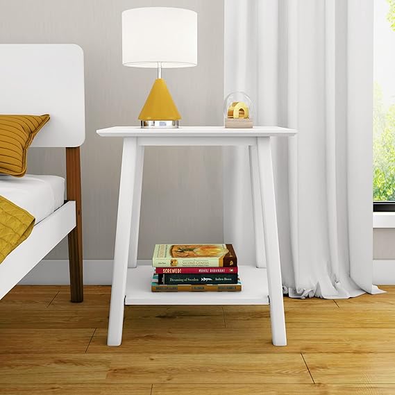 Mid-Century Modern Solid Wood Nightstand – White Finish