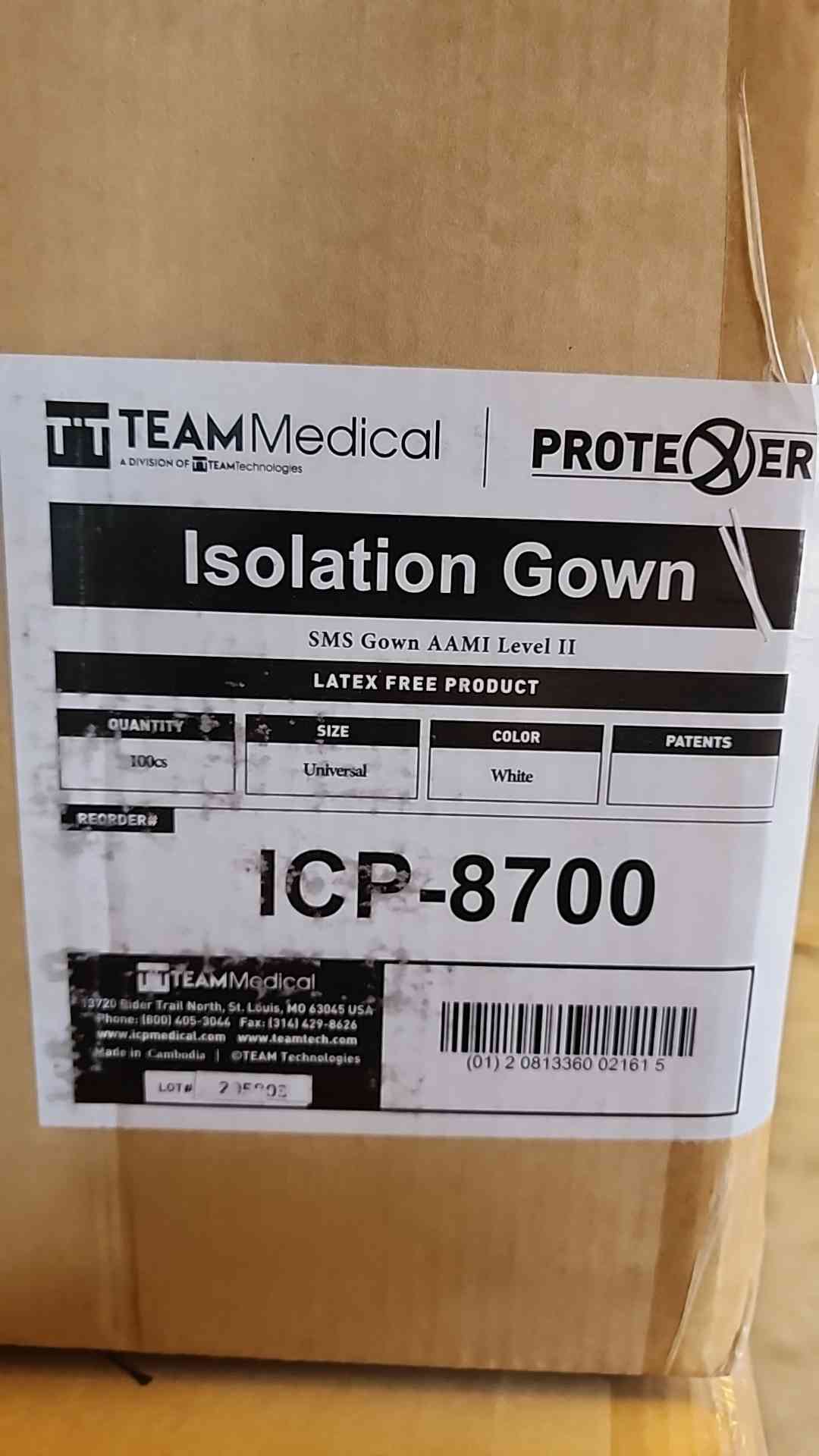 Quantity: 100 gowns per case
