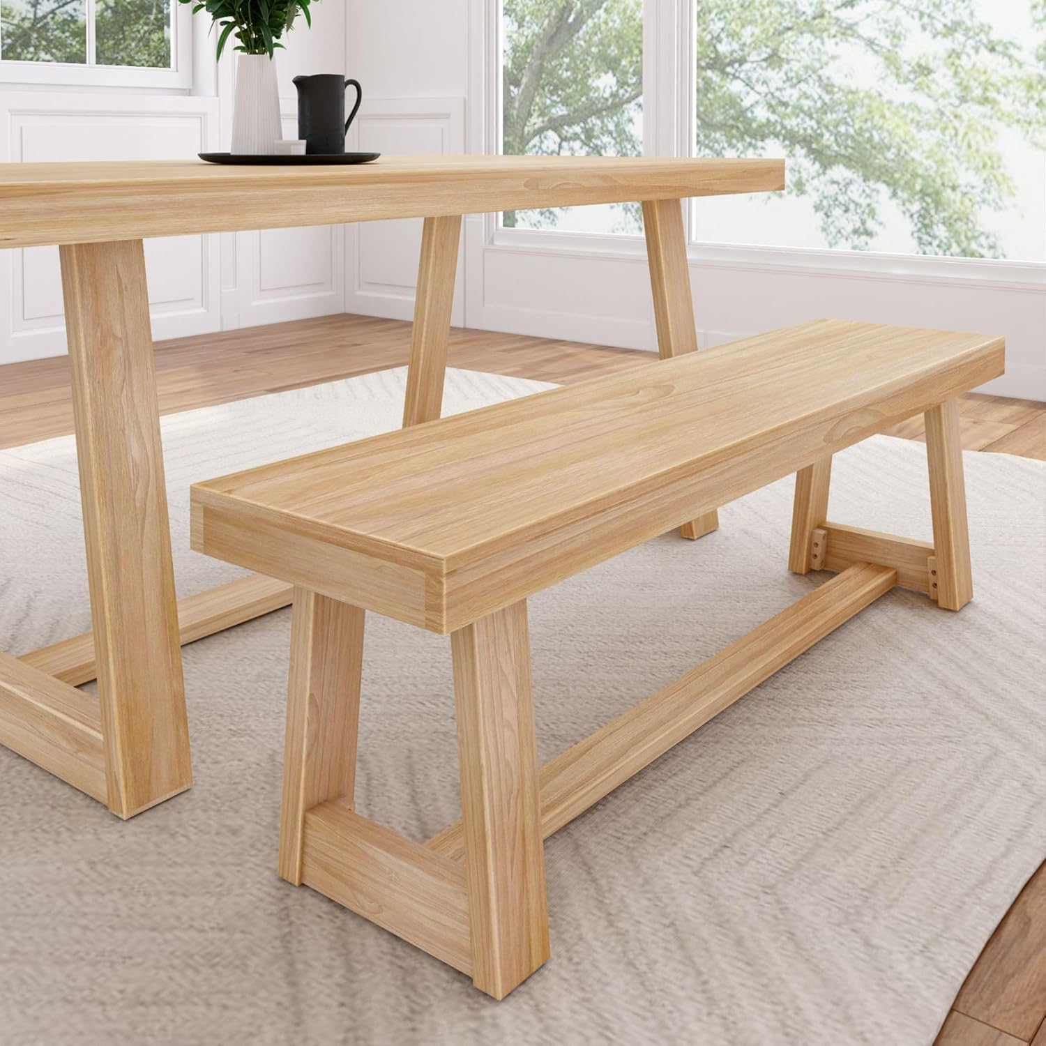 Bring modern simplicity into your space with this 60" Solid Wood Dining Bench, designed with clean lines, a smooth blonde wirebrush finish, and robust craftsmanship. Built from durable, knot-free solid wood, this bench is both functional and visually refined, supporting up to 401 lbs while maintaining a lightweight profile.